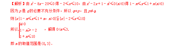 【解析】 由x2-8x-20≤0,得-2≤x≤10,由x2-2x+1-m2≤0(m>0),
