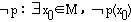 存在量词命题p:∃x∈M,p(x),它的否定﹁p:∀x∈M,﹁p(x).