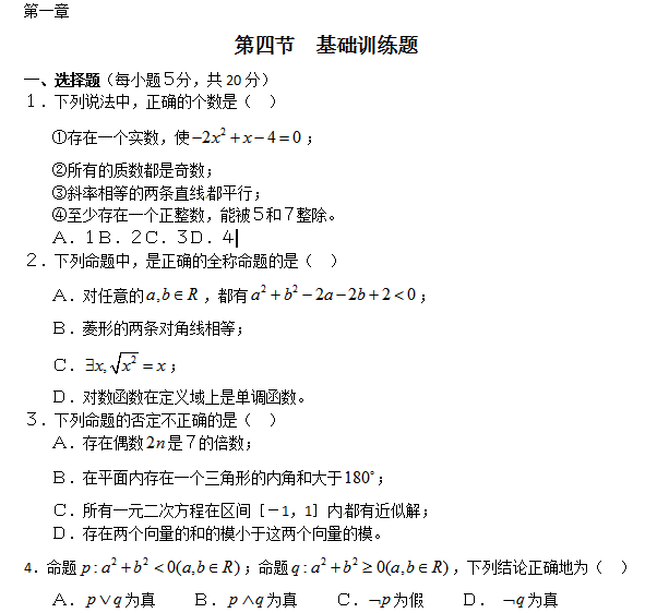 4.判断下列命题是全称量词命题还是存在量词命题,并判断其真假.
