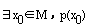 3、“存在M中的一个x0,使p(x0)成立”的命题,记为x0∈M,p(x0),读作“存在一个x0属于M,使p(x0)成立”。
