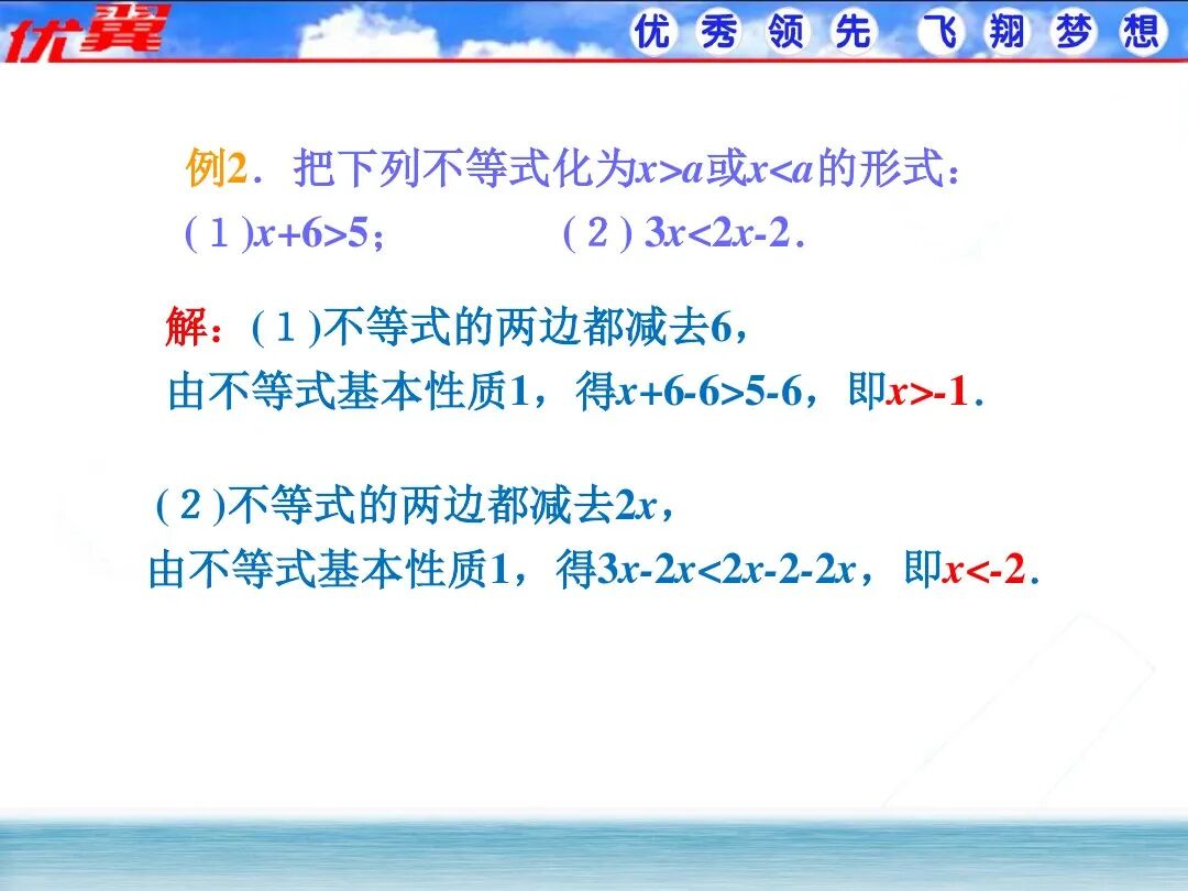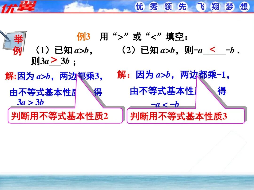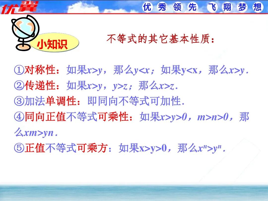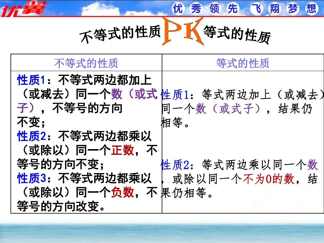 ① 其实质是运用实数运算来定义两个实数的大小关系。它是本章的基础,也是证明不等式与解不等式的主要依据。
