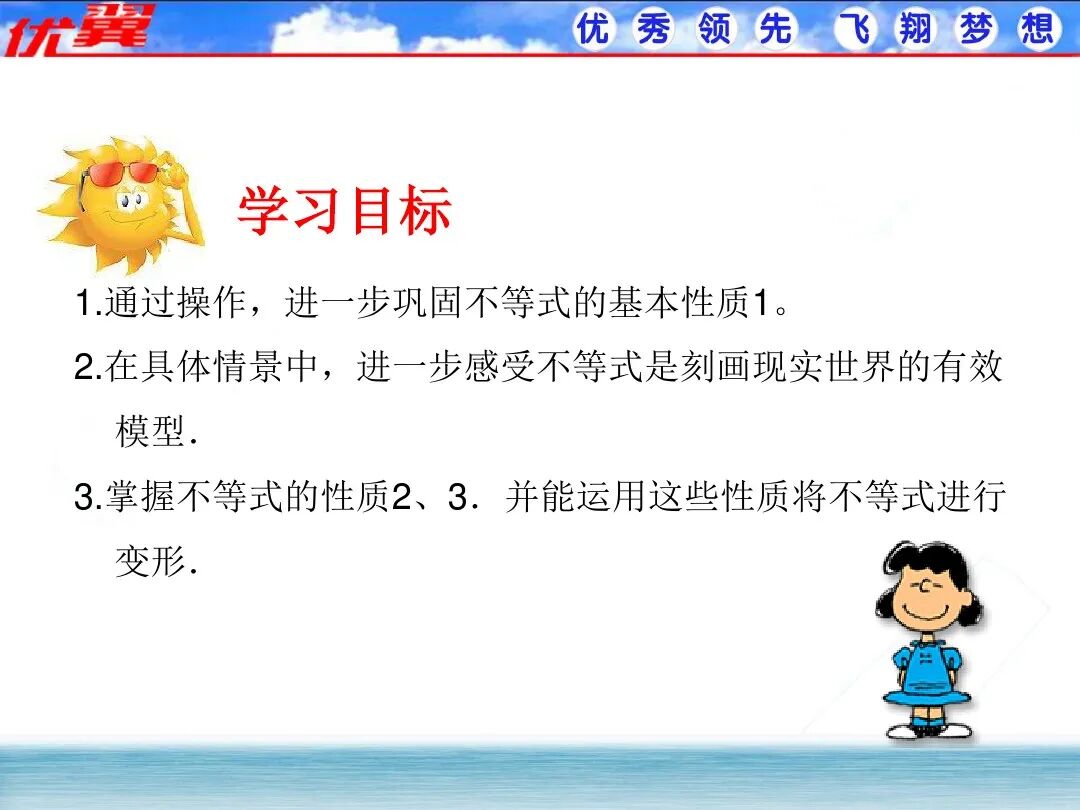 1.掌握不等式的三条基本性质以及推论,能够运用不等式的基本性质将不等式变形解决简单的问题.