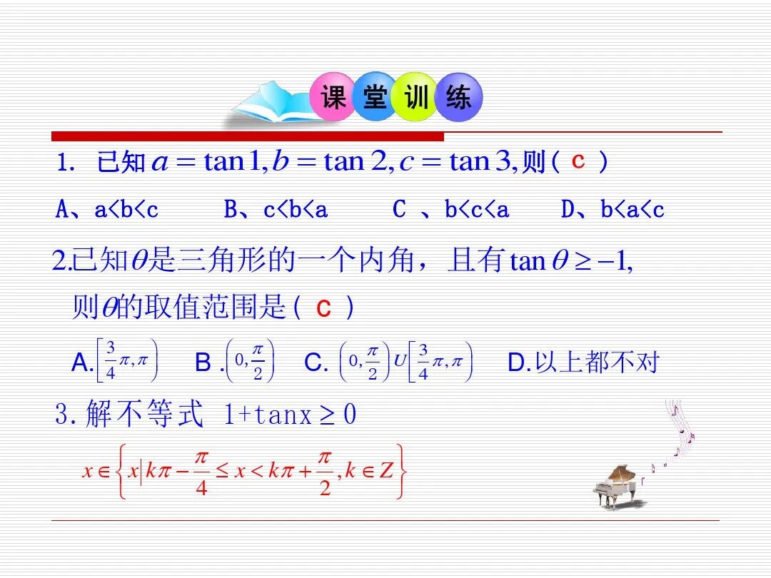(2)根据正切函数的图像,写出tan x≥-1的解集.