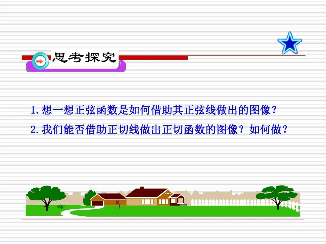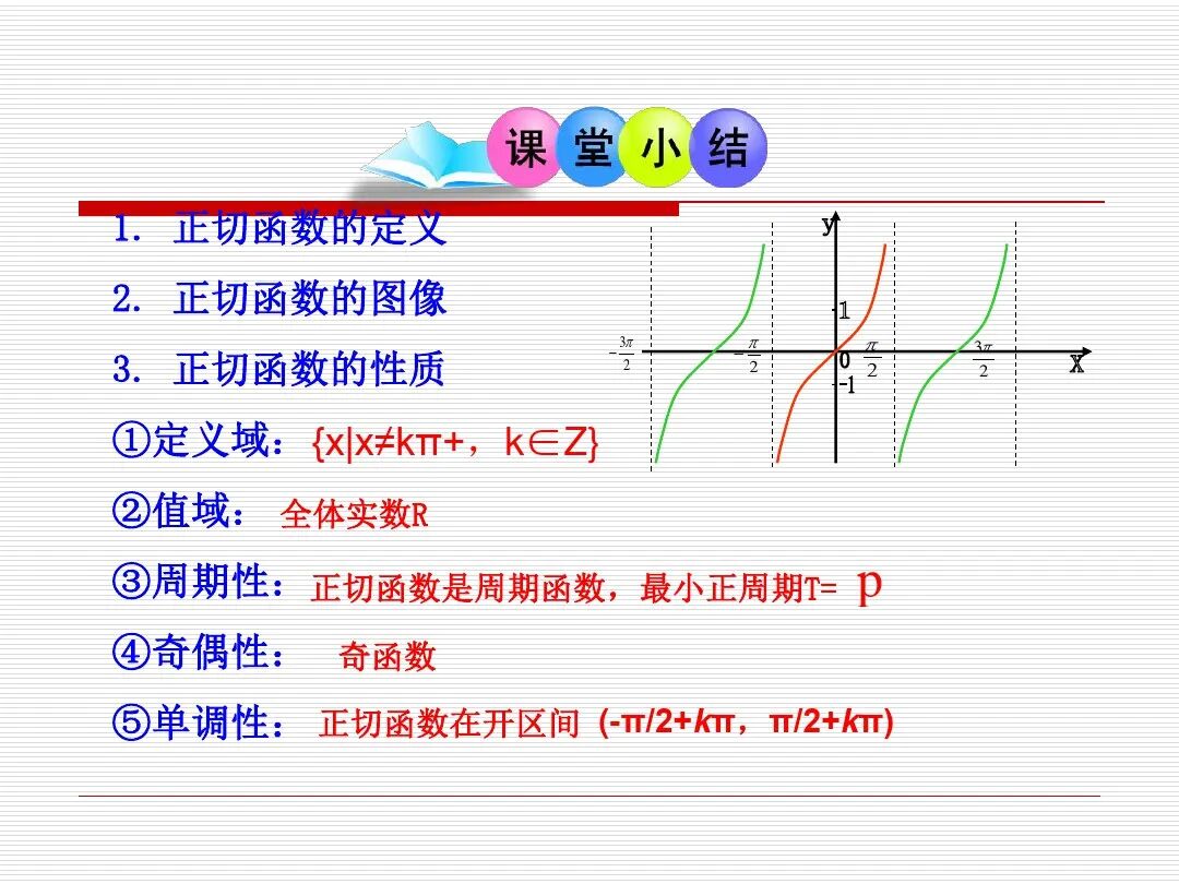 规律方法 1.作正切函数的图像时,先画一个周期的图像,再把这一图像向左、右平移.从而得到正切函数的图像,通过图像的特点,可用“三点两线法”,这三点是as4alco1(-(π4),-1),(0,0),as4alco1((π4),1),两线是直线x=±π2为渐近线.