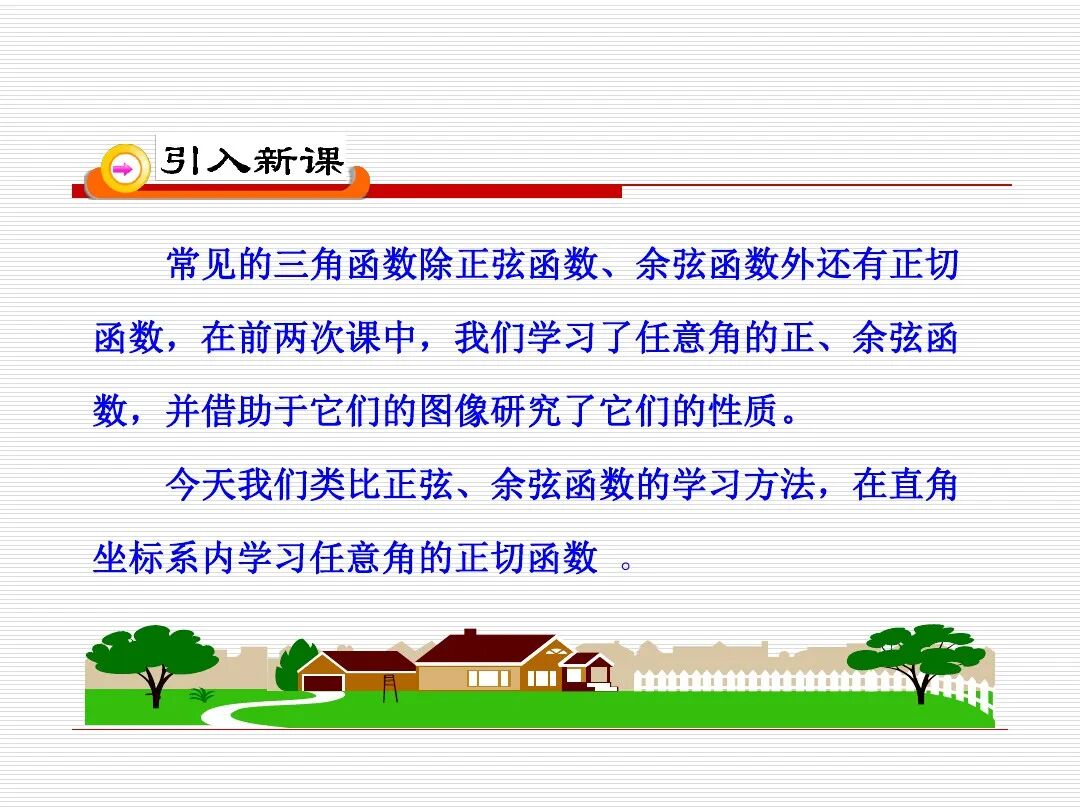 【教师小结】已知角α终边上任一点的坐标(x,y)利用定义求tanα时,其值与该点的位置无关且tanα=y/x.但要注意判断角α所在象限.利用定义可求下列特殊角的正切: