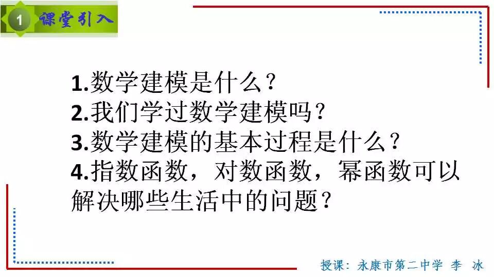 3、通过切身感受数学建模的过程,体验数学在实际问题教学中的价值和作用,从而激发学生的学习兴趣;培养学生勇于探索、勤于思考的精神。