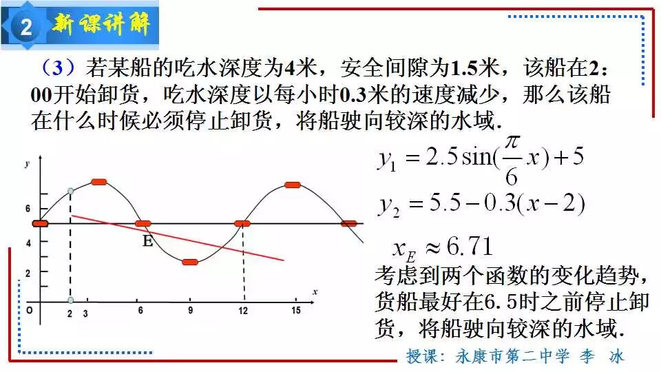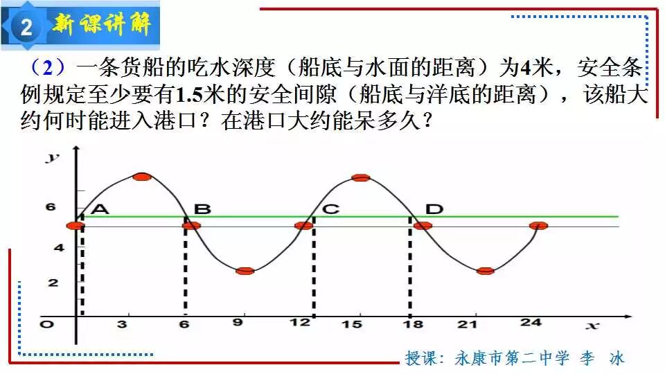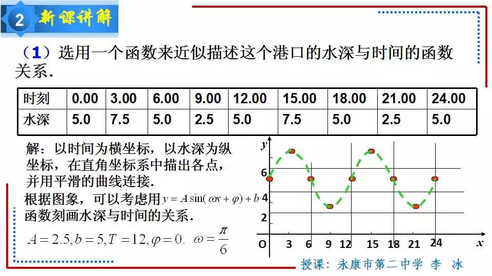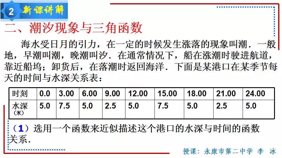 教学重点:用三角函数模型刻画潮汐变化规律,用函数思想解决具有周期变化规律的实际问题。