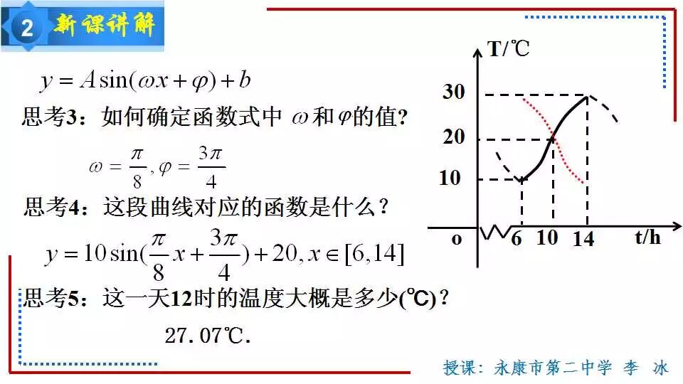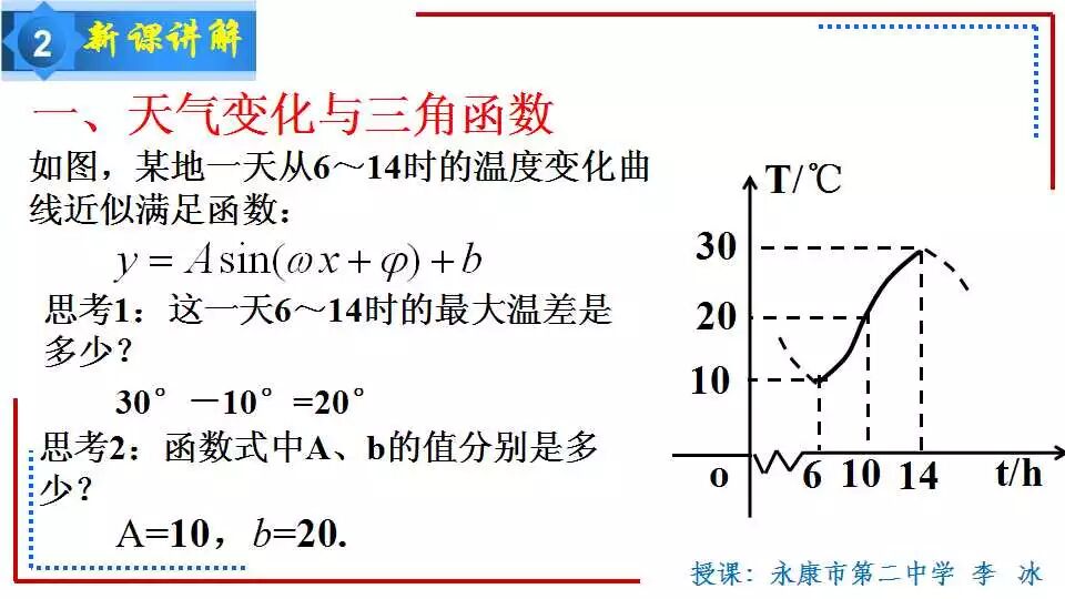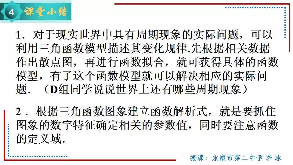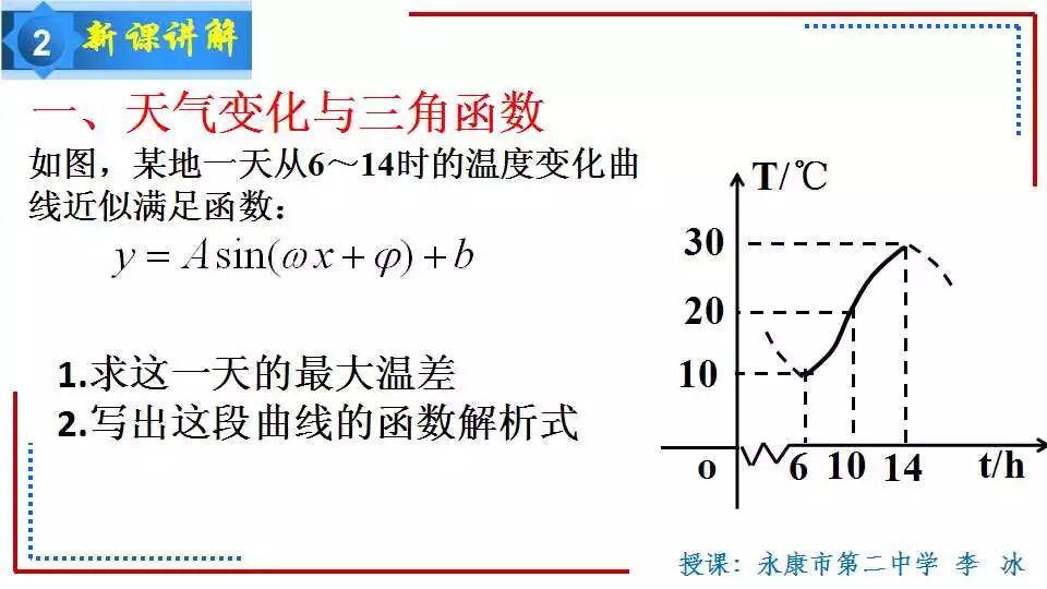 2.体验实际问题抽象为三角函数模型问题的过程,体会三角函数是描述周期变化现象的重要函数模型;