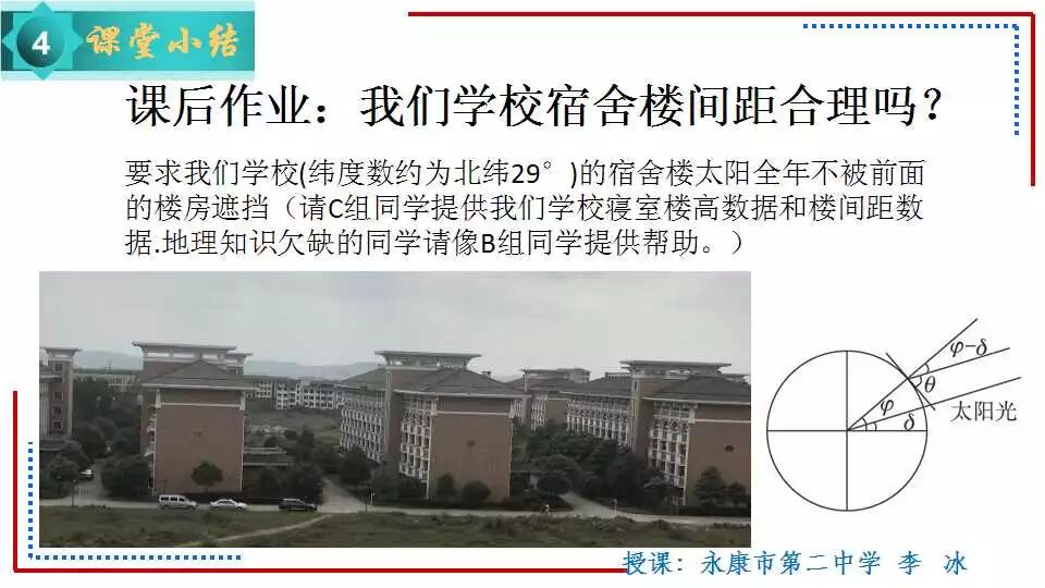 从本课的学习内容来看,属于应用教学,对三角函数基础知识有较高的要求,同时本课中所涉及的建模思想对学生来说比较陌生,通过课堂上对知识回顾及背景探究材料的分析,加上教师适时的引导,学生就会逐渐发现其中的规律所在。