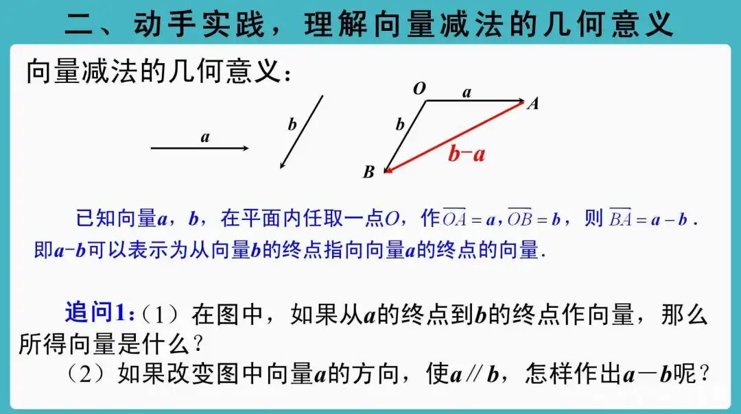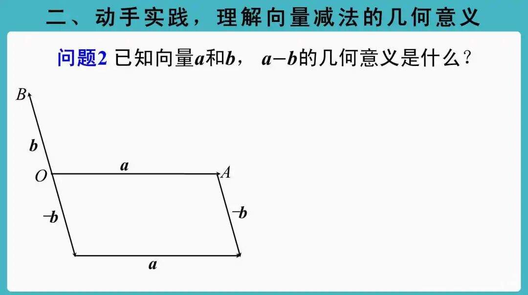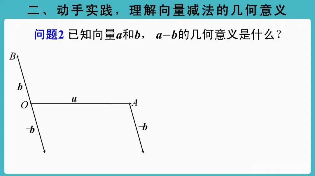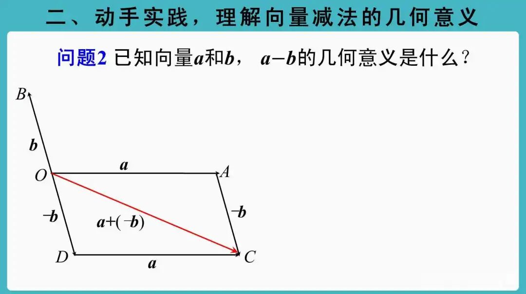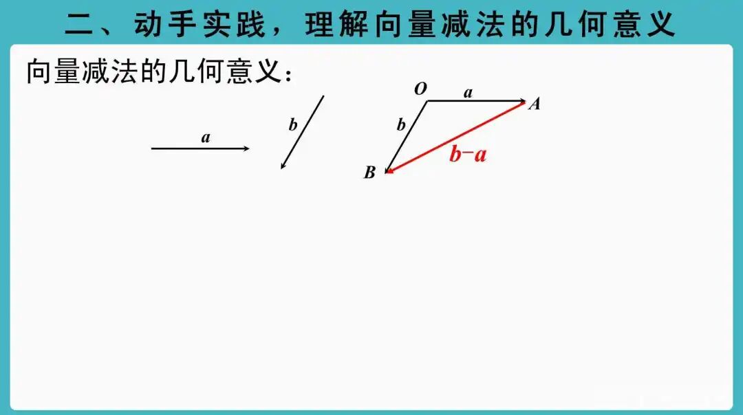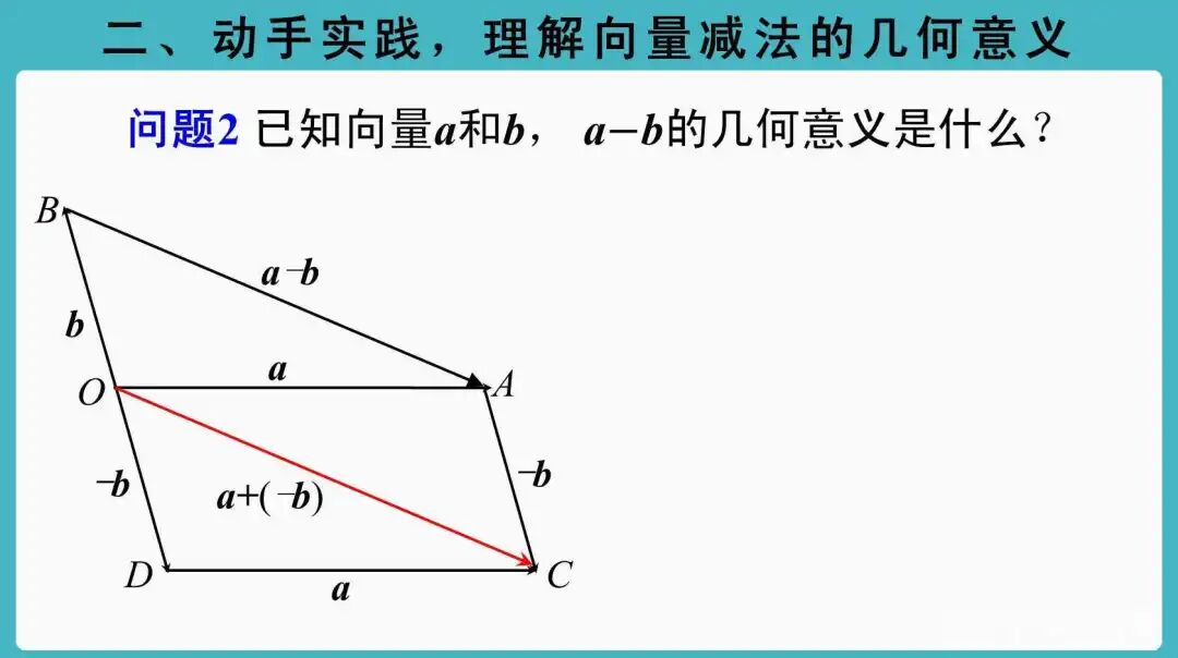 1. 理解并掌握向量的减法运算并理解其几何意义,理解相反向量.