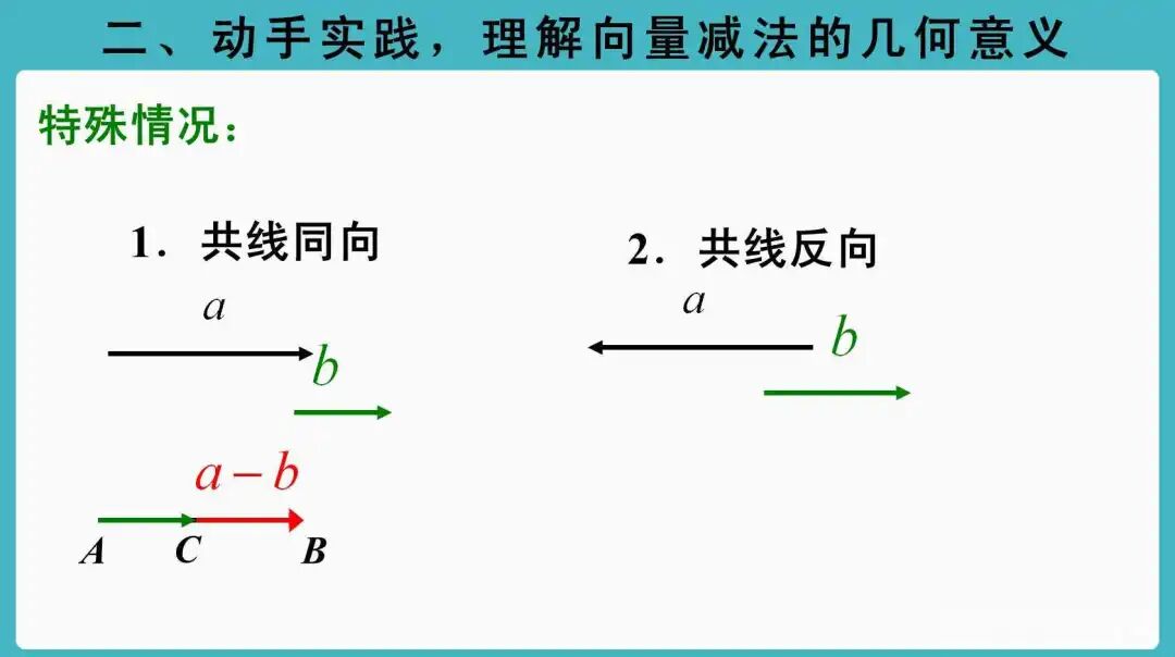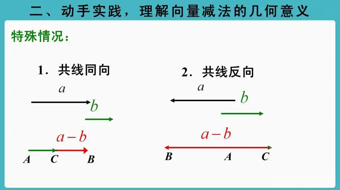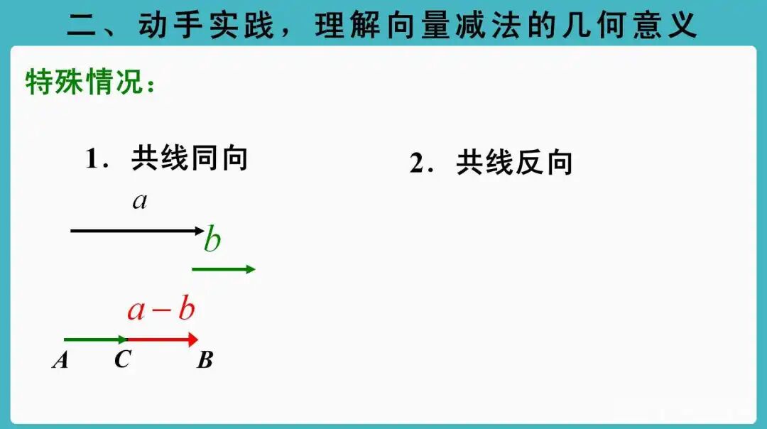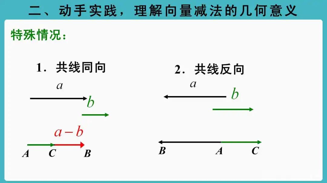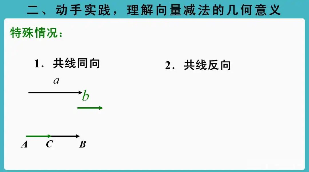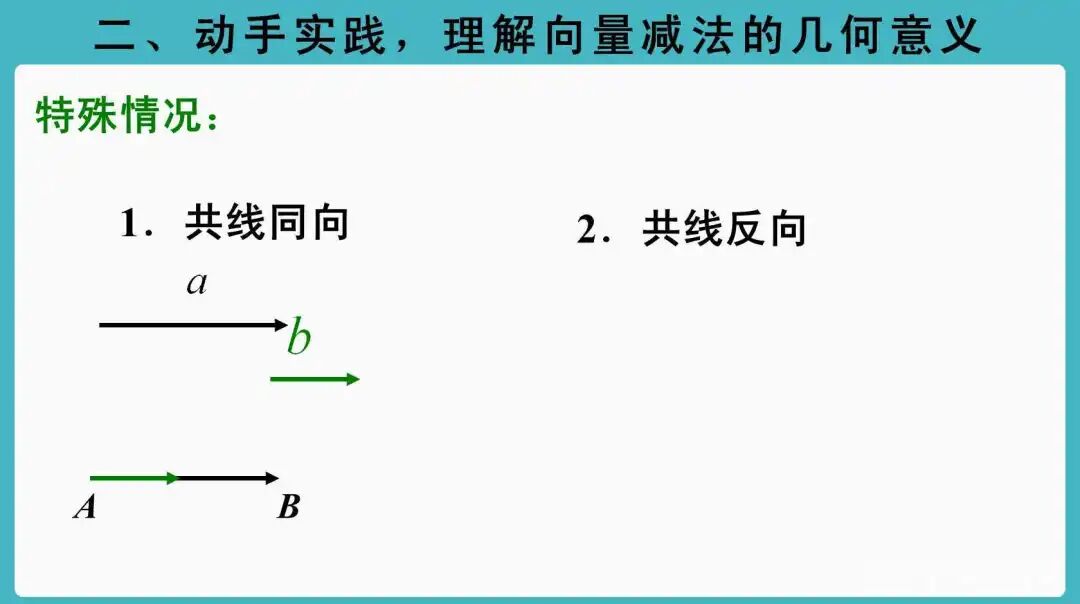 两个向量的差是减向量的终点到被减向量的终点的向量. 当两个向量同向时