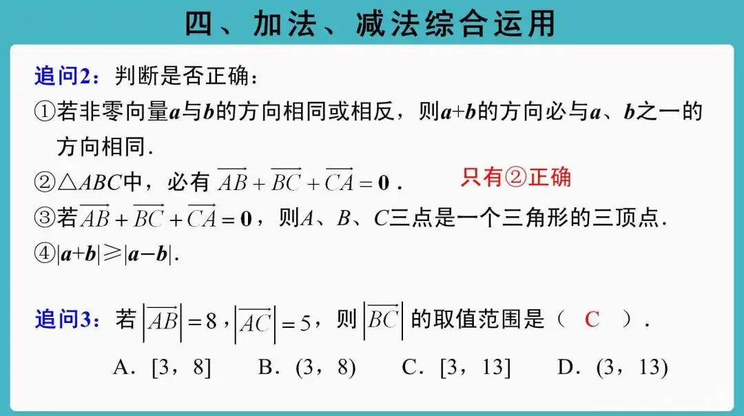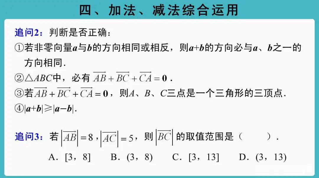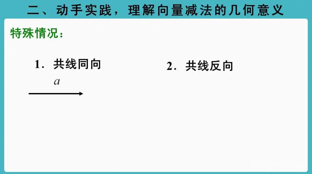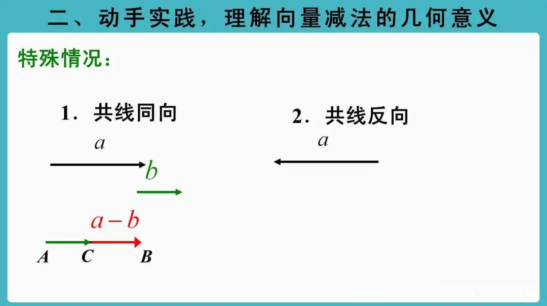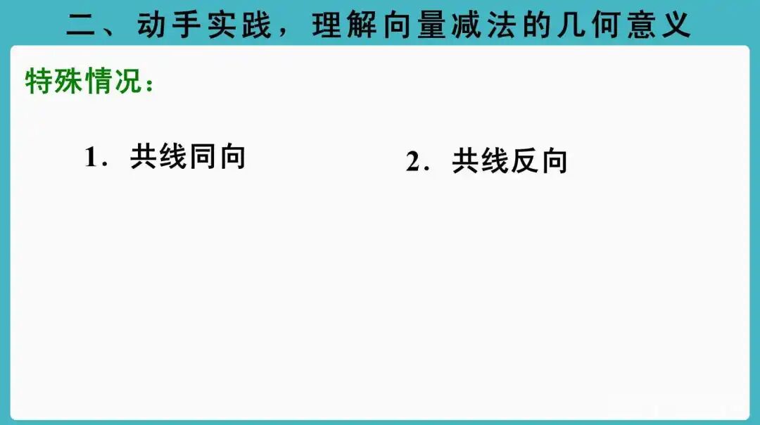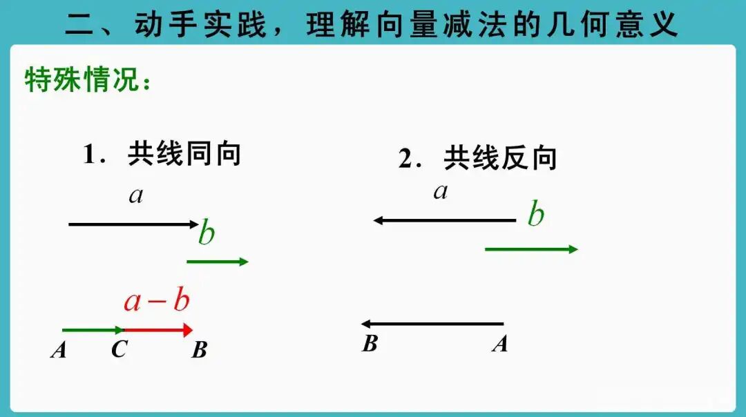两个向量的差是减向量的终点到被减向量的终点的向量. 当两个向量同向时