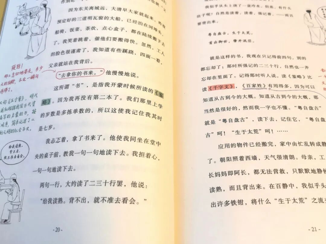 这种笔记式的“注释”和“插科打诨”的点评,系统地梳理了文章的知识架构。穿插在其中的有趣漫画和例子等,对文章表达的内容进行了深入浅出的讲解,帮助孩子轻松培养提炼要点、梳理信息的能力。而且,在阅读过程中,孩子还能了解大师写作的思维方式,真的是一举多得!除了鲁迅自己的文章,这套书还精选了部编语文教材《我的伯父鲁迅先生》《有的人》《一面》《回忆鲁迅先生》4篇文章,从另一角度介绍鲁迅先生,让他的形象更加具体,孩子也能了解得更加全面。所以,这套书特别适合中小学生都用来当课外读物读,可以用它作为梳理鲁迅文章的工具书。![]()