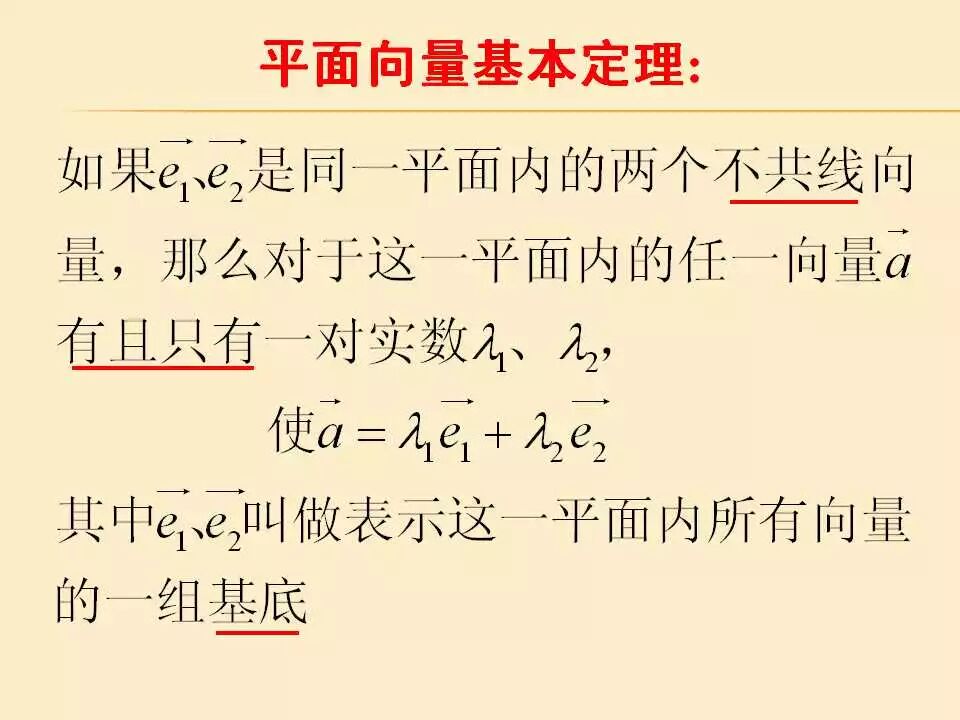 难点:平面向量基本定理,用平面向量基本定理解决有关问题.