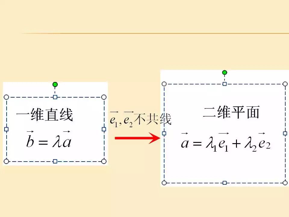 1.知道任何一个平面向量都可以唯一地表示成两个不平行向量的线性组合,即.