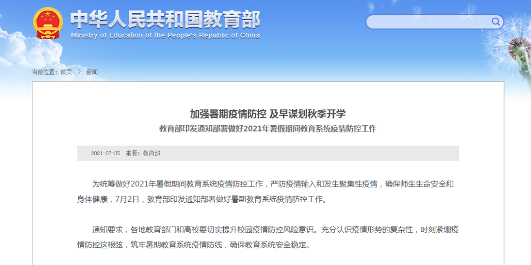 7月5日,教育部官网发布通知,全文如下: