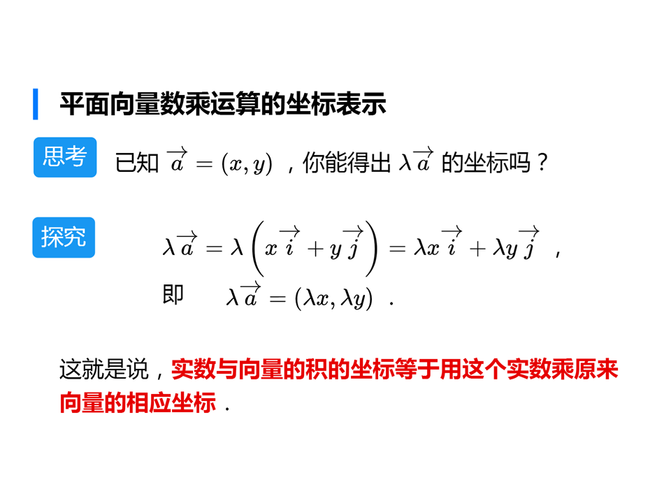 (3)知道用坐标表示的平面向量的加、减运算与数乘运算的运算法则,并能熟练进行运算.