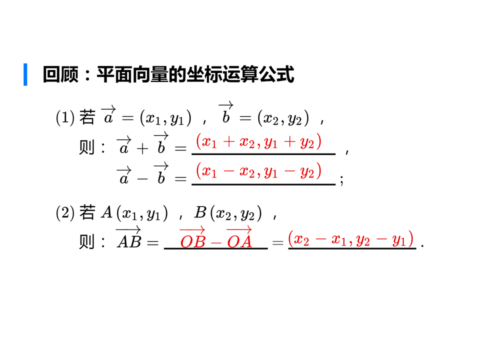 (3)掌握平面向量的加、减运算与数乘运算的坐标表示.