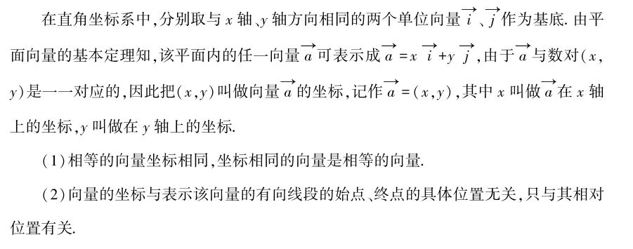 (2)借助平面直角坐标系,理解平面向量的正交分解及坐标表示.