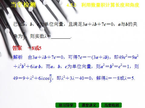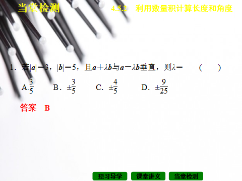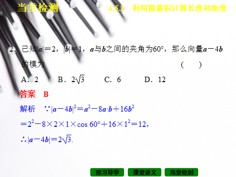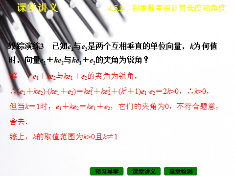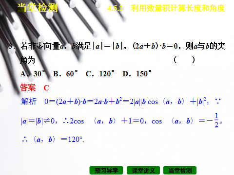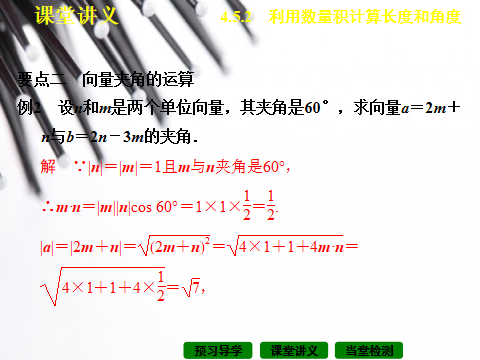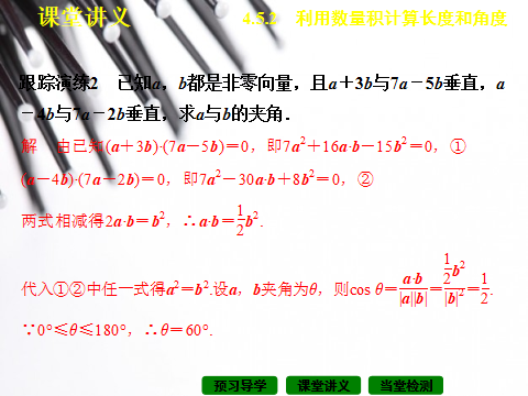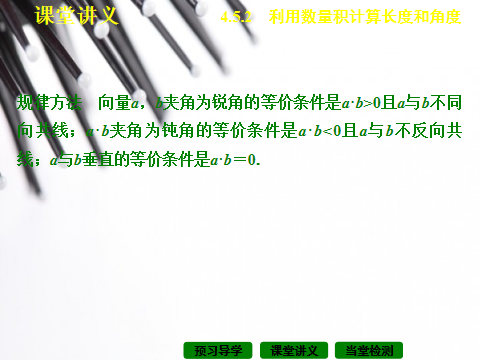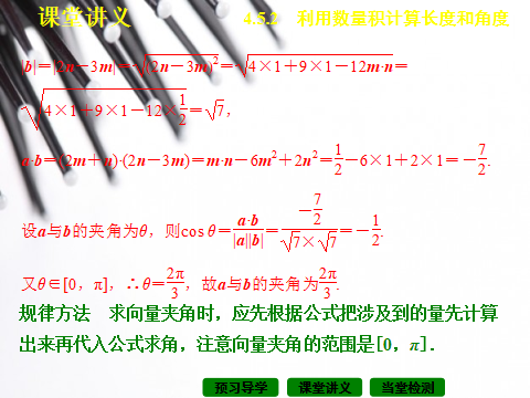 2.求向量的夹角时通常利用数量积求解,一般步骤为: