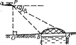 1.如图所示,直升飞机航行至跨河大桥AB的斜上方P点处,此时飞机离地面的高度 P0=2500米,且A、 B、0三点在一条直线上,测得大桥两端的俯角分别为α=30º,β=45º.