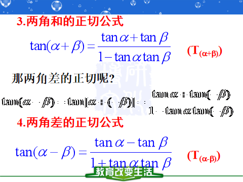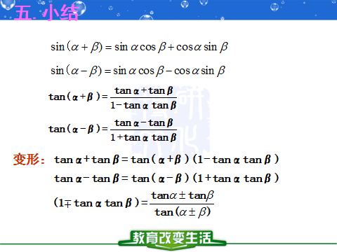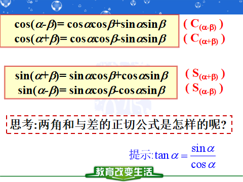教学重点:推导两角和的余弦公式及两角和与差的正弦、正切公式,并能区别两角和与差的正弦、余弦、正切公式.