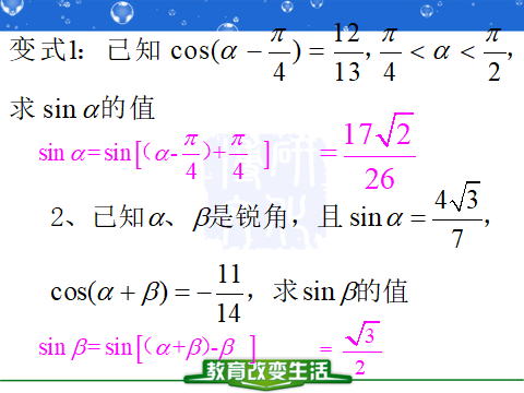 教学难点:两角和与差的正弦、余弦、正切公式的理解和灵活运用.