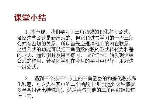 【教师小结】积化和差公式的功能与关键