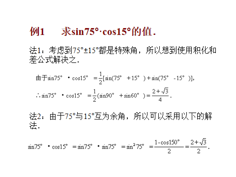 2关键是正确地选用公式,以便把非特殊角的三角函数相约或相消,从而化为特殊角的三角函数.