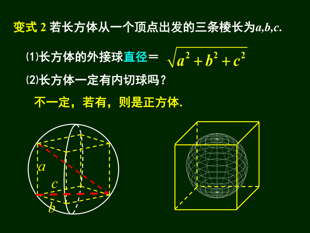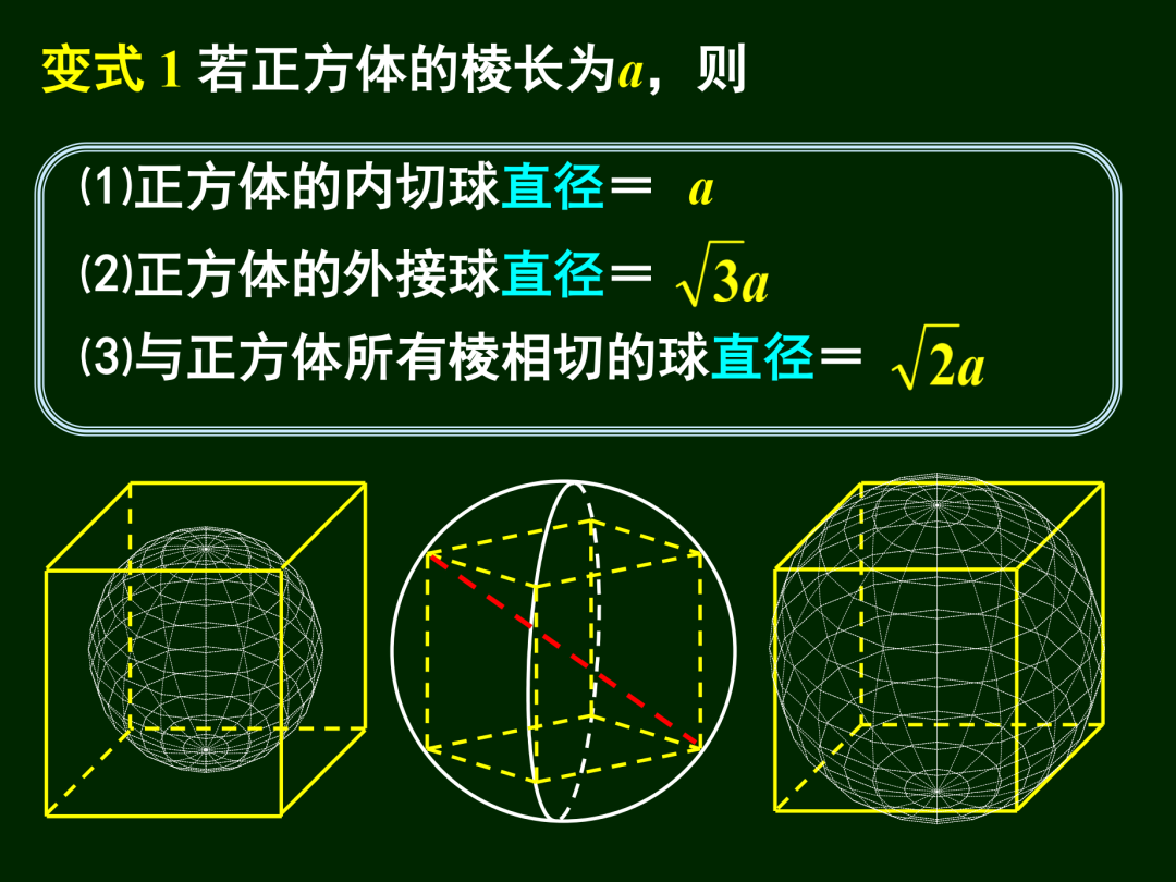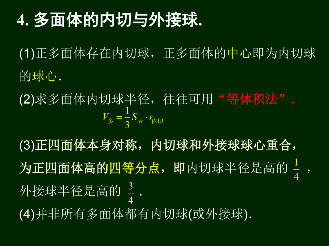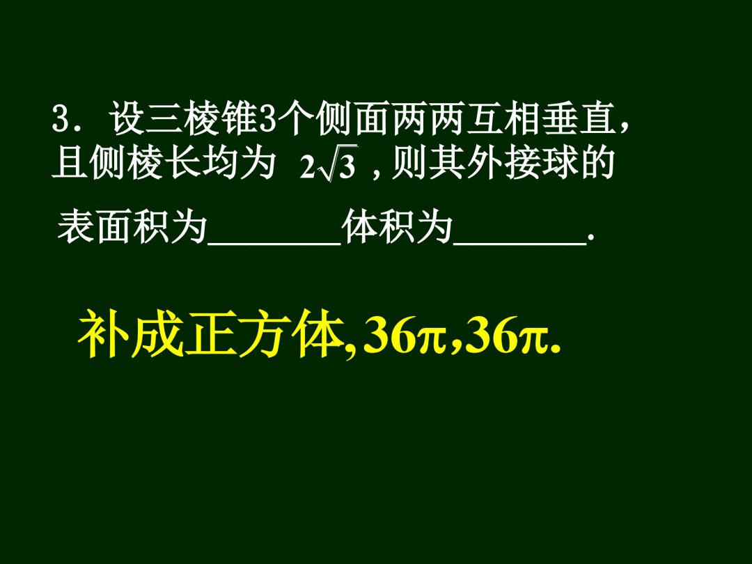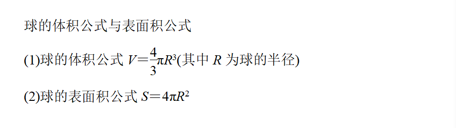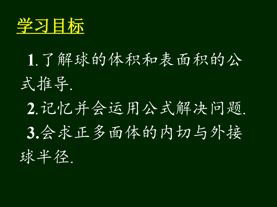 (2)能运用球的表面积公式及体积公式进行计算和解决有关实 际问题。