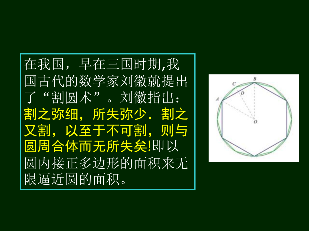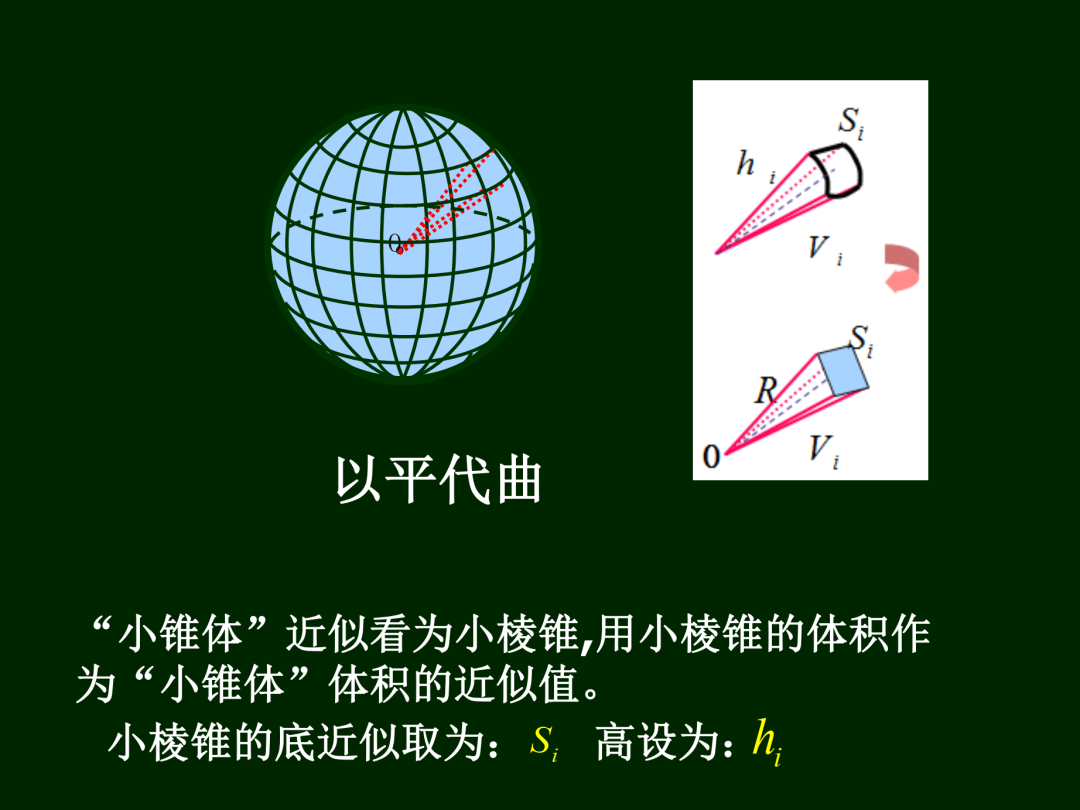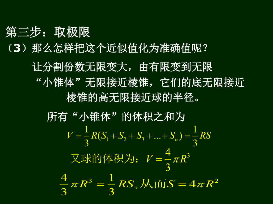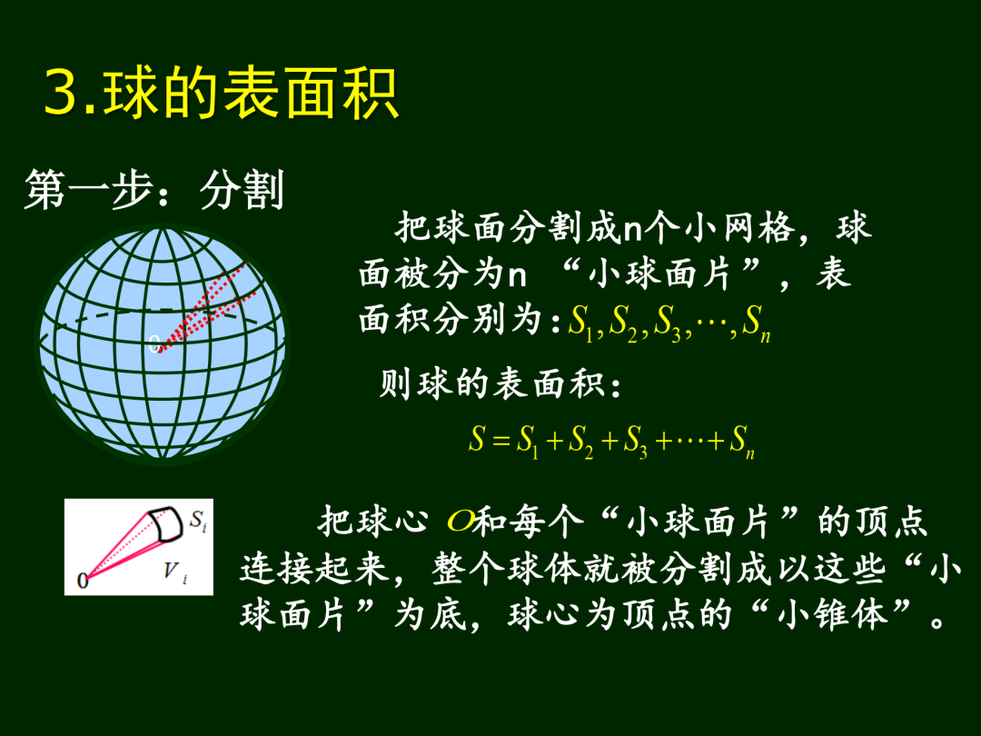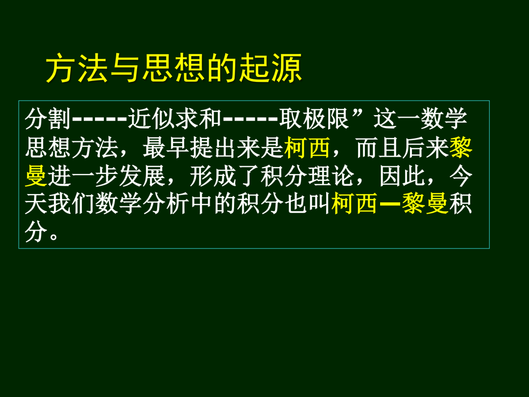 方法2:分割 ---近似---求和---求极限(借用刘辉的“倍边割圆术”思想)
