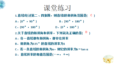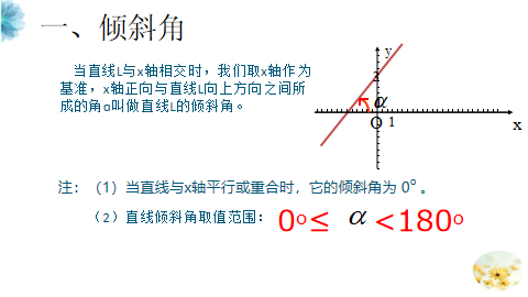 由此可知, 一条直线l的倾斜角α一定存在,但是斜率k不一定存在.