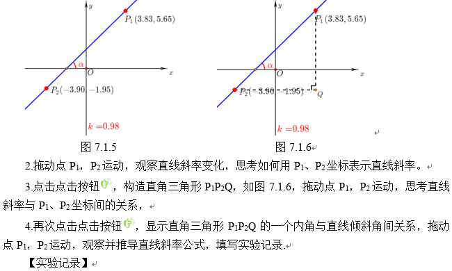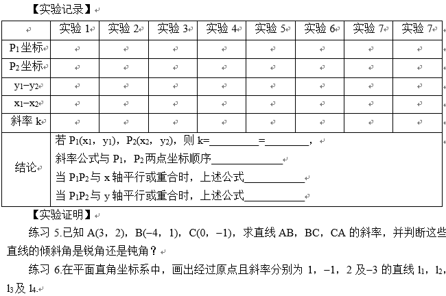 (2) 通过斜率概念的建立和斜率公式的推导,帮助学生进一步理解数形结合思想,培养学生树立辩证统一的观点,培养学生形成严谨的科学态度和求简的数学精神.