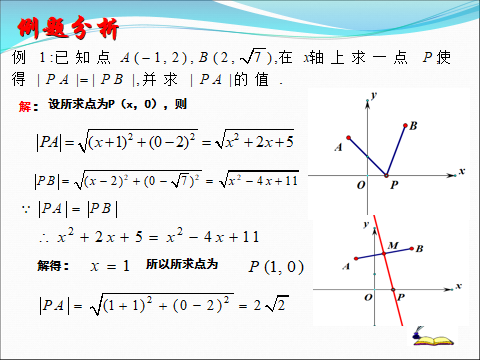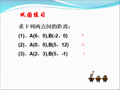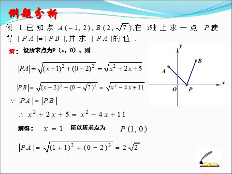 通过例题的解答,使学生明确求两点间距离的步骤.