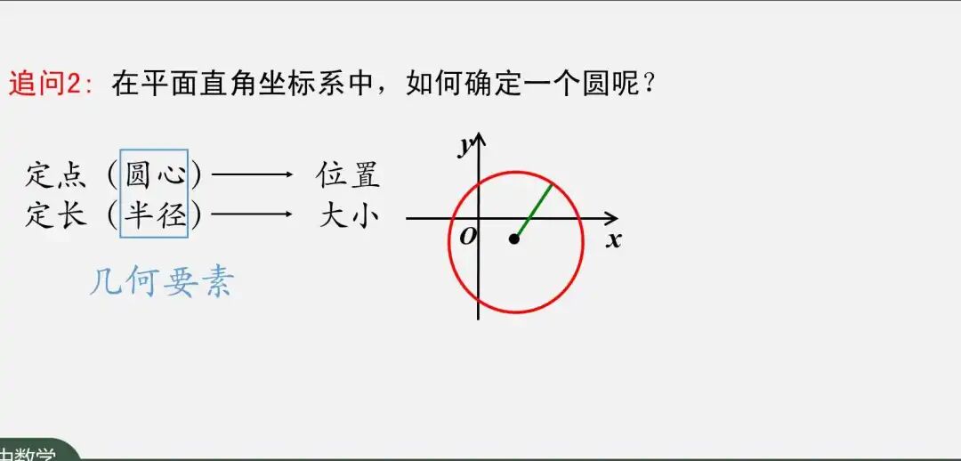 让学生回顾圆的定义,明确确定圆必须知道圆心和半径. |
