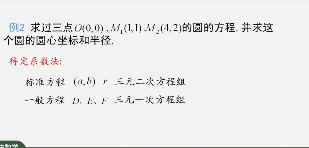 要求出圆的一般方程,只要求出三个系数D、E、F就可以了.