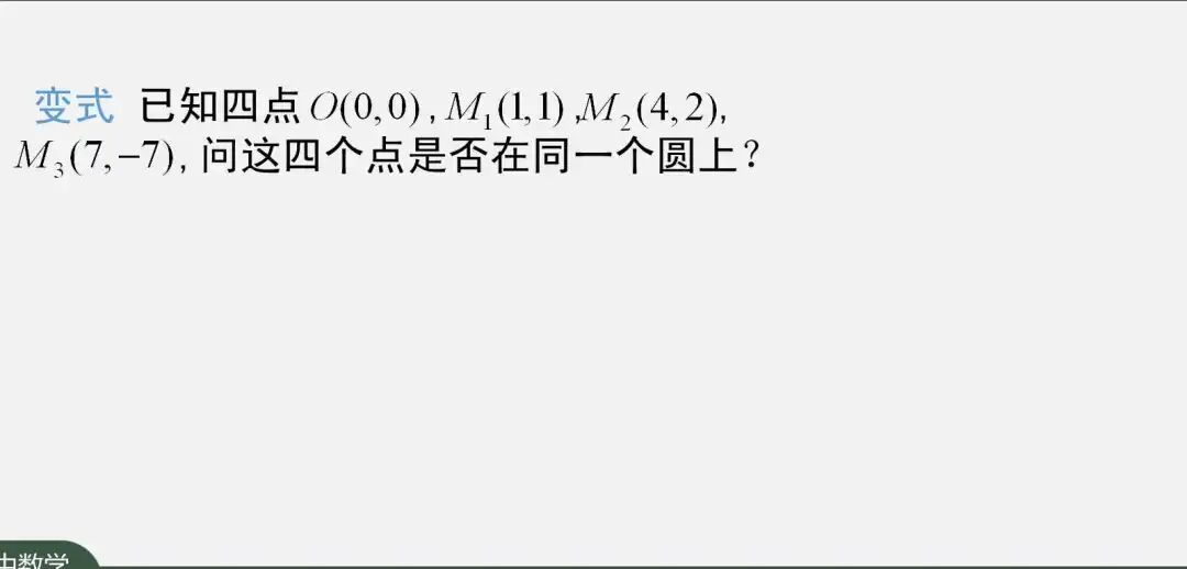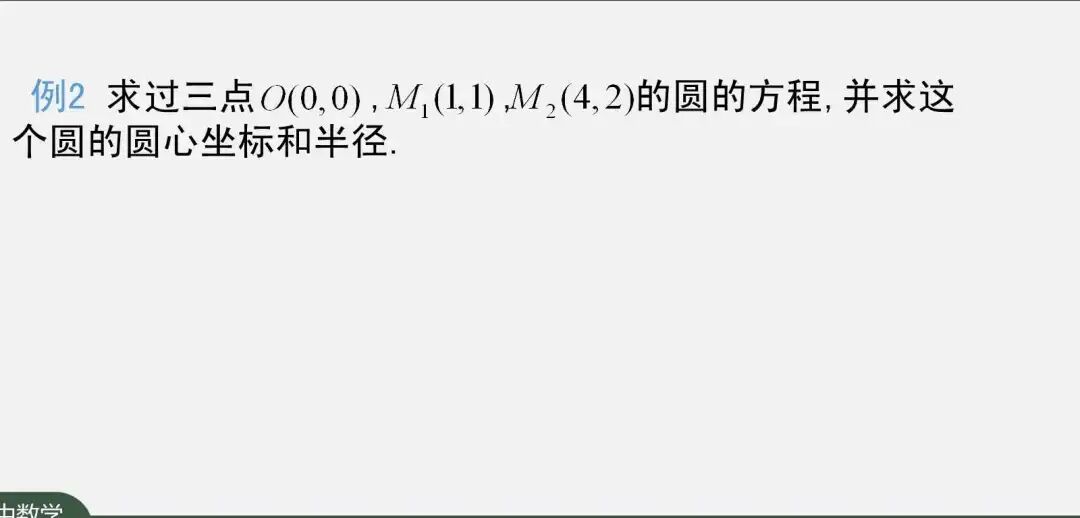 ⑴进一步熟悉圆的一般方程. ⑵通过本题的练习,使学生掌握待定系数法求解圆的一般方程的步骤.