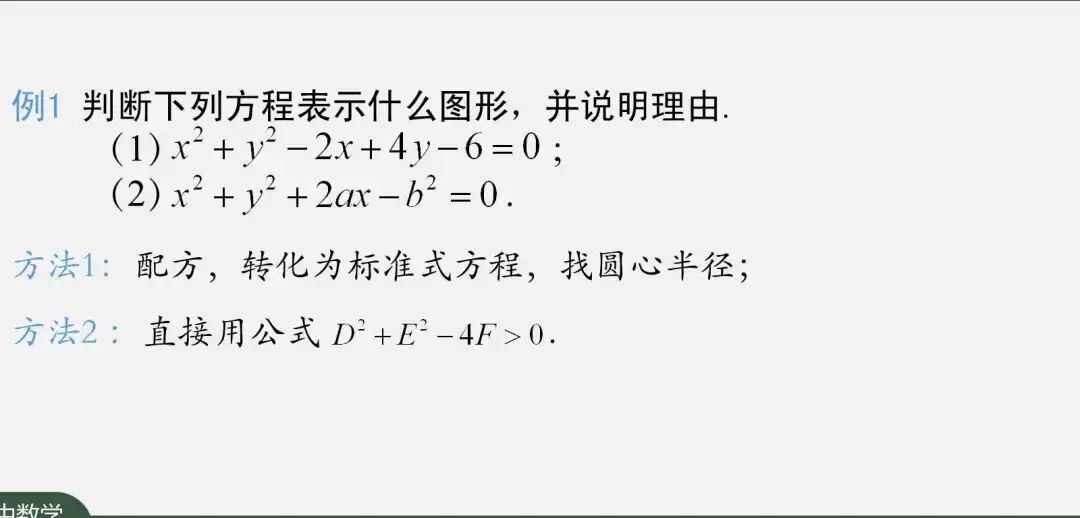 故当时,方程①表示一个圆,方程①叫做圆的一般方程.