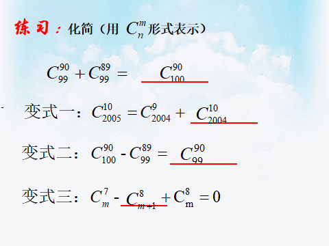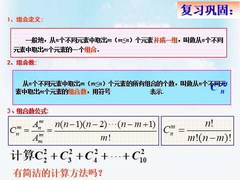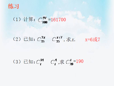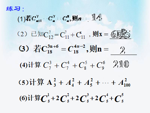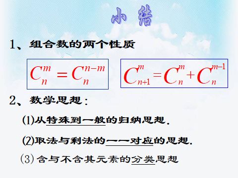 1.理解并能熟练掌握组合数的两个性质及其应用。